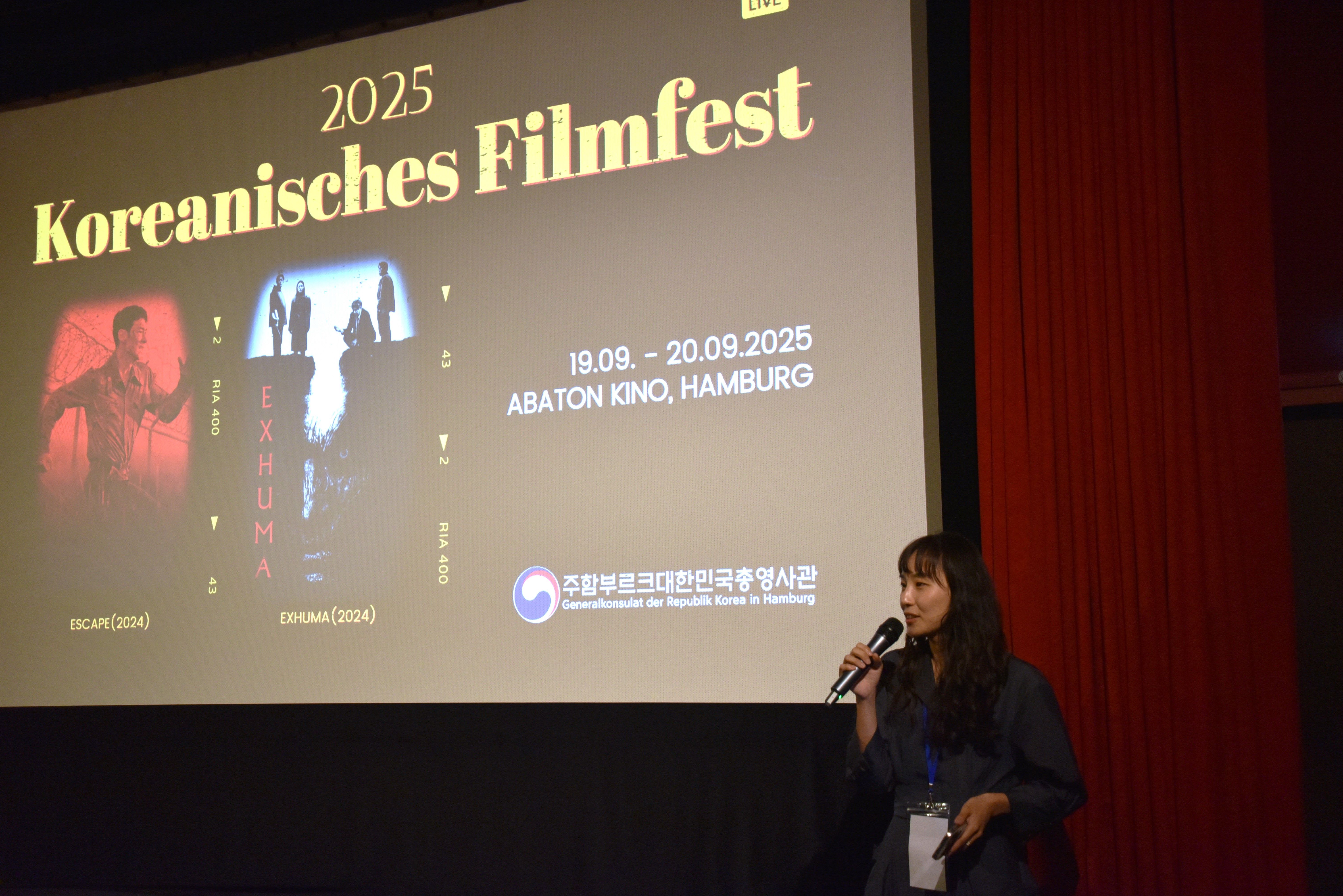 우리 총영사관은 2025.9.19.-20.(금, 토) 양일간 아바톤 영화관(Abaton Kino)에서 「2025 함부르크 한국영화제」(현지어: Koreanisches Filmfest 2025)를 개최하였습니다.