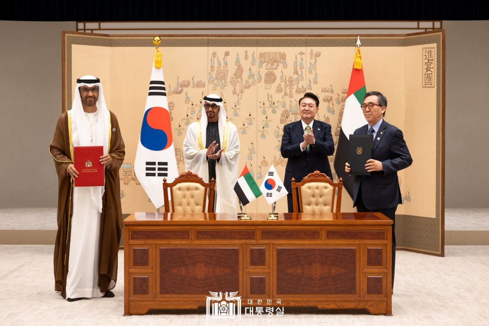 ㅇ 양 정상은 에너지 안보, 탈탄소화, 기후 행동 및 첨단 기술에 대한 투자를 더욱 가속화하기 위해 이 파트너십을 활용하고 확장하는 것의 중요성에 동의하고, 이 파트너십이 양국 및 글로벌 공동체에 이익이 되는 혁신과 지속 가능성을 촉진하는데 있어 핵심 동력이 될 것임을 주목했다. 이러한 맥락에서, 양 대통령은 COP28에서 채택된 ‘UAE 컨센서스’가 현재의 ‘결정적 10년’ 간의 행동을 가속화할 정의롭고, 질서정연하며, 공평한 에너지 전환으로의 길을 세계에 제공하였음을 확인했다.